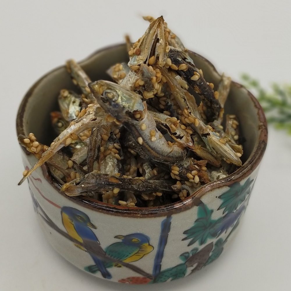 煮干し(いわし(国産)、食塩)、砂糖、ごま、しょうゆ、澱粉分解物、食塩/調味料(アミノ酸等)、(一部に小麦・大豆・ごまを含む)
